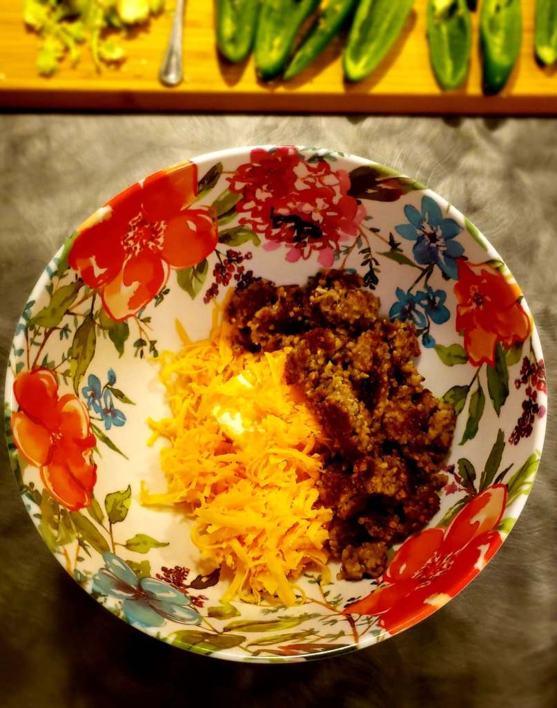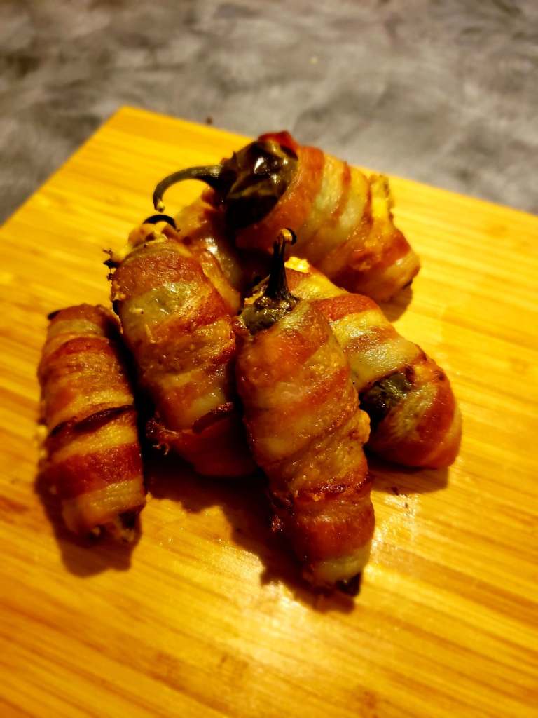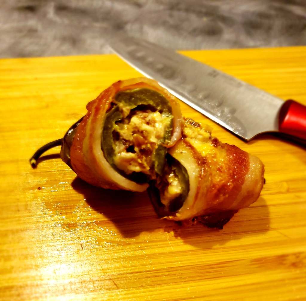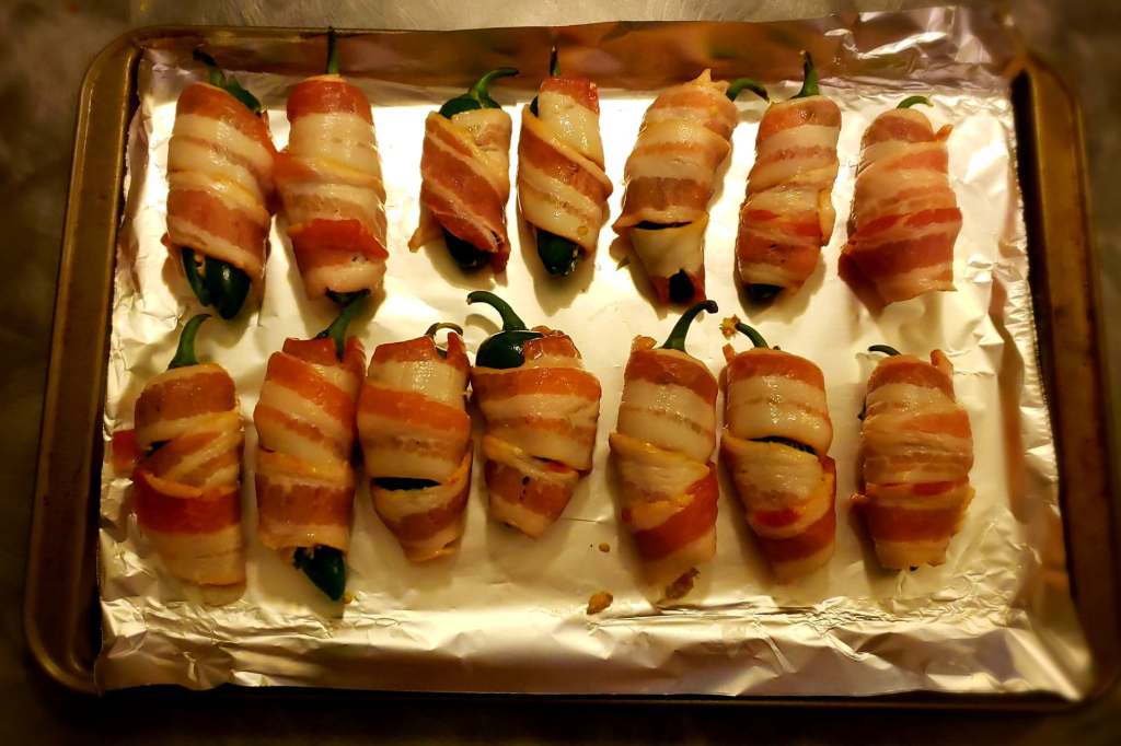 Preheat your oven to 450 degrees. Brown the Goetta, then set it aside. Slice the jalapenos lengthwise leaving the stems intact. Make sure both halves stay next to one another because the two halves will be put back together once filled. Take a spoon and scoop out the seeds and white membrane inside the jalapenos. Be careful while doing this, do not touch your face or eyes until you have thoroughly washed your hands. In a medium-sized bowl mix together the cream cheese, cheddar cheese, and Goetta. Spoon the filling into the hollowed-out jalapenos. Place the two halves of the jalapenos back together. Wrap each jalapeno with a slice of bacon and place on a foil-lined rimmed baking tray. Bake for 35 minutes, then broil on high for 3-5 minutes this will ensure the bacon is crispy. Let cool slightly and serve.