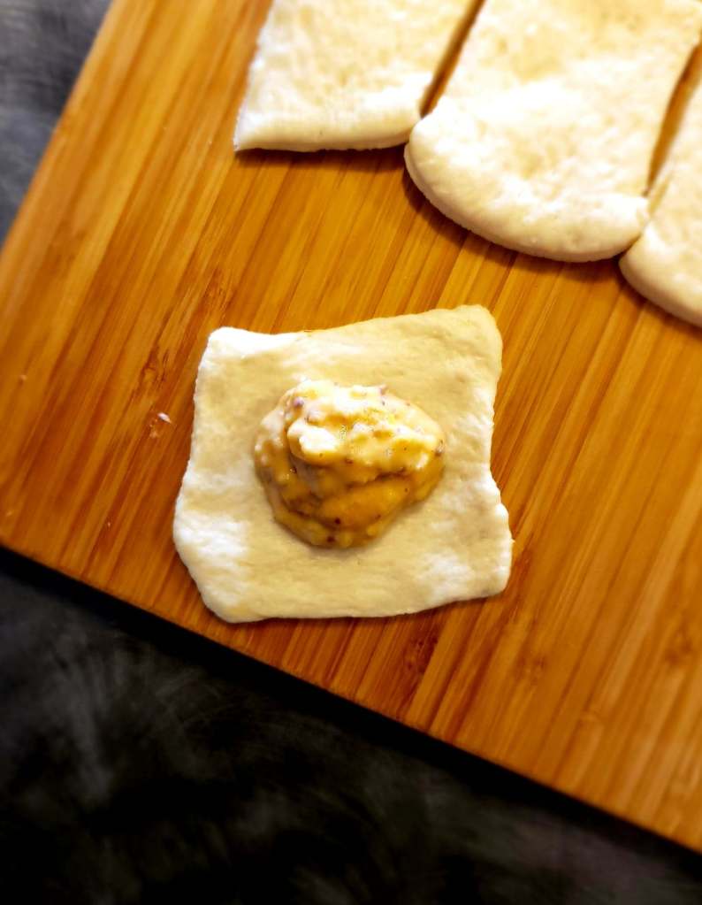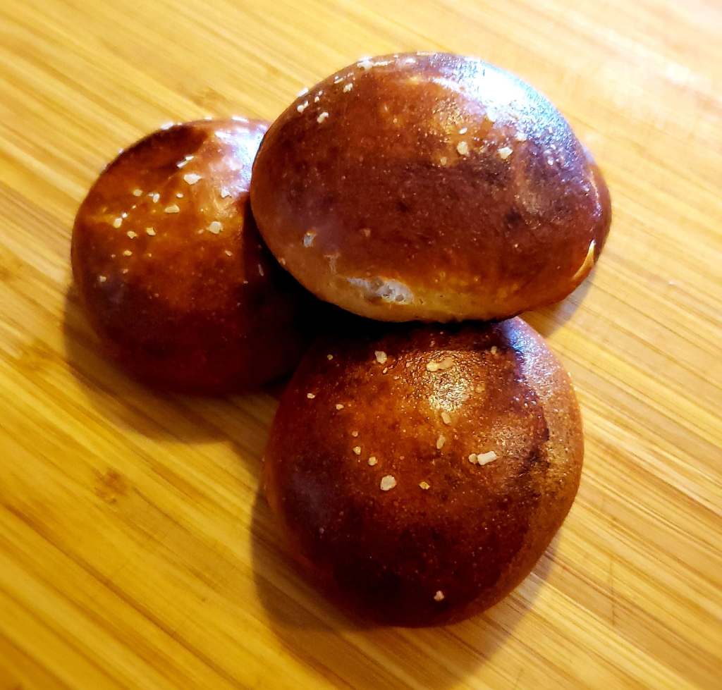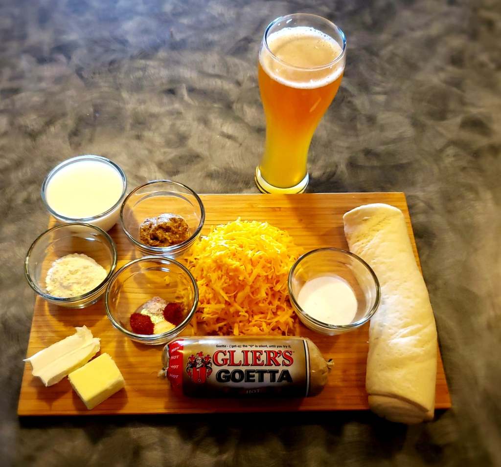 Preheat the oven to 425 degrees. Brown the Hot Goetta. In a saucepan melt the butter and add the flour. Whisk this mixture together over medium heat for one minute. Slowly add the milk while whisking until it is fully incorporated. Add the cream cheese and whisk until it melts into the mixture. Slowly add the beer, whisk until it is combined. Add the mustard, garlic powder, onion powder, paprika, cayenne, and salt. Add the cheese a ½ cup at a time, make sure the cheese is fully melted before adding more. Once all of the cheese is fully melted transfer the beer cheese to a bowl and add the browned Goetta. Place the bowl in the freezer for 45 minutes to an hour. Stir the beer cheese occasionally, you want to be able to scoop the mixture easily while still having the cheese hold its form. Doing this will make the next step a lot easier. Next, you want to take your pizza crusts and roll them out. Cut 2-inch by 2-inch squares out of the dough. Use a teaspoon to scoop cheese onto the center of the dough square. Do not overfill the dough or the pretzel bites will not stay together. Take the corners of the dough and bring them together, pinching tightly. Four new points will form in the dough, bring these to the center as well and pinch. Make sure that no gaps are exposing the cheese mixture. Place the completed bites on a tray while preparing the next step. In a saucepan boil 5 cups of water, once the water is boiling add the baking soda (it will bubble up). Place the bites into the water for 30 seconds, do this in batches. Place the boiled bites back onto the tray. Scramble the egg in a small bowl with a splash of beer. Brush the egg and beer mixture over all of the bites. Sprinkle the bites with a topping of coarse salt. Bake for 15-20 minutes. Once the bites are fully browned take them out of the oven, let them cool slightly then serve and enjoy.