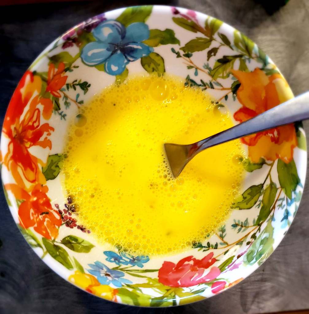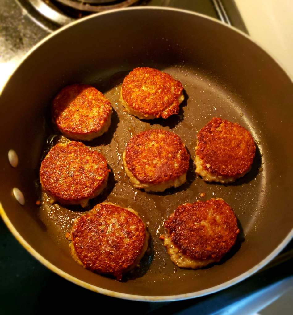 Preheat the oven to 250 degrees. Tear the bread into 1-inch pieces, it is important to tear and not cut the bread because this will impact the overall texture. Place the pieces on a sheet tray then place the tray in the oven. Mix and toss the bread every 20 minutes for around 60 minutes. This will dry out the bread without adding color. Generously butter a 13x9x2 inch baking pan. Slice the Goetta into patties and brown in a pan over medium to medium-high heat. Place the browned patties on a paper towel-lined plate and set aside. Once the bread is done take it out of the oven and set aside to cool. Raise the temperature of the oven to 350 degrees.